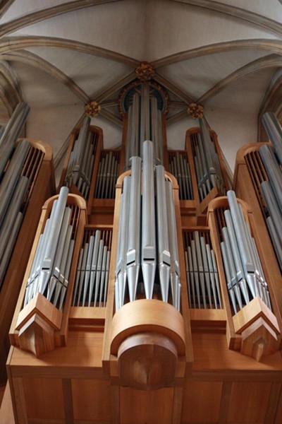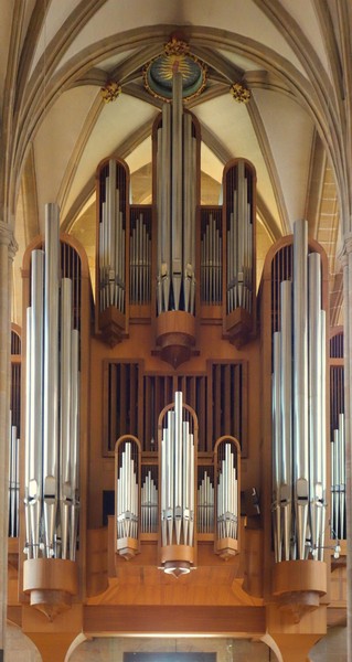 Die Hauptorgel hat 63 Register auf 3 Manualen und Pedal, eine mechanische Tontraktur und elektrische Registertraktur. Es handelt sich bei dieser von der Fachwelt und dem zahlreichen Konzertpublikum sehr gelobten Orgel um ein Instrument von gewaltiger, symphonischer Klangpracht. Gleichwohl ist ein barocker Kern gleichsam der Ausgangspunkt.