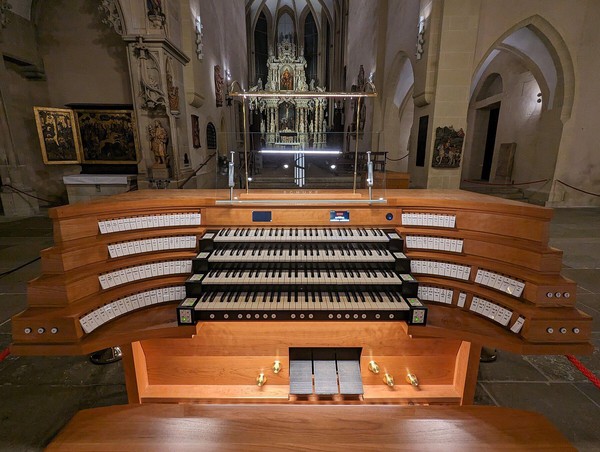 Man kann vom Spieltisch der Hauptorgel auch die Chororgel anspielen, was ein räumlich sehr reizvoller Effekt ist.